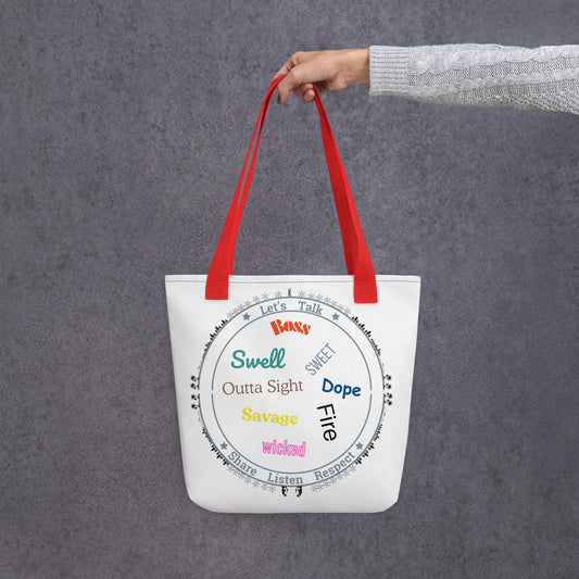 Our Multi-Generational Slang Tote Bag isn’t just a bag—it’s a time capsule of cool. Featuring iconic slang from different decades, this tote sparks nostalgia, laughter, and connection wherever you go.
